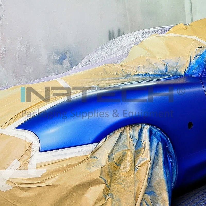 Banda de mascare este realizata pe suport din hartie usor creponata cu un adeziv din cauciuc natural (Hot Melt).