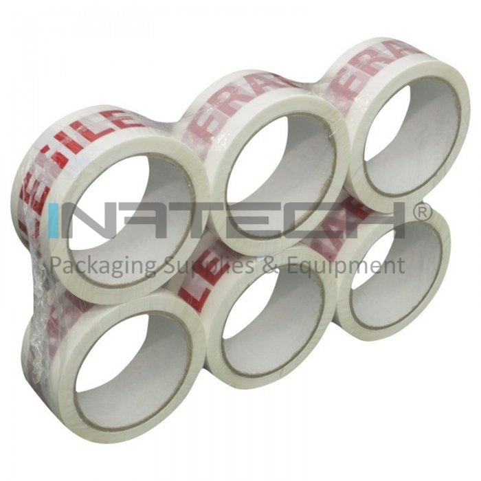 Banda adeziva personalizata FRAGIL pentru ambalare pe suport din BOPP (polipropilena biaxial orientata) cu adeziv acrilic. Banda adeziva FRAGIL este silentioasa, nu face zgomot la derulare si este un produs de atentionare cu un nivel de performanta foarte bun, fiind o alegere mai sigura si mai putin costisitoare. Aceasta banda adeziva nu necesita masuri suplimentare de siguranta ca in cazul benzilor adezive cu adeziv solvent si este rezistenta la imbatranire. Poate fi stocata si utilizata perioade lungi de timp fara a-si pierde proprietatile. Este folosita pentru sigilarea ambalajelor ce contin obiecte fragile.
