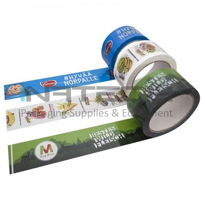 Utilizand banda adeziva personalizata, ambalajele sunt inchise corespunzator, sigilate si personalizate, banda adeziva imprimata fiind de asemenea un mijloc modern si eficient de reclama. Utilizata pentru ambalare pe suport din BOPP (polipropilena biaxial orientata) cu adeziv acrilic. Aceasta banda adeziva personalizata nu necesita masuri suplimentare de siguranta ca in cazul benzilor adezive cu adeziv solvent si este rezistenta la imbatranire. Poate fi stocata si utilizata perioade lungi de timp fara a-si pierde proprietatile.