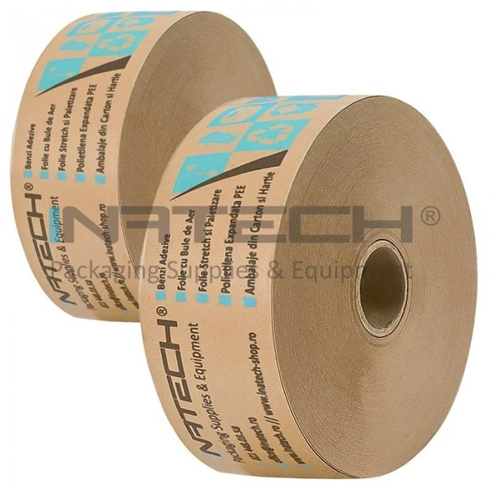 Banda Adeziva Umectibila Personalizata 60 mm x 200 m Lungime 200 m, Numar Culori 2 Culori, Latime 60 mm, Adeziv Amidon, Tip Imprimare Pe Suprafata, Culoare Natur, Buc / Pachet 250