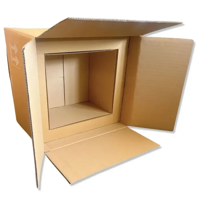 Ambalajul este compus din doua invelisuri izolante din hartie si o cutie exterioara din carton ondulat. Se livreaza in format plat, economisind spatiu si resurse. Montajul se face rapid, cu doar doua componente, simplificand procesele de ambalare si optimizand fluxurile logistice.