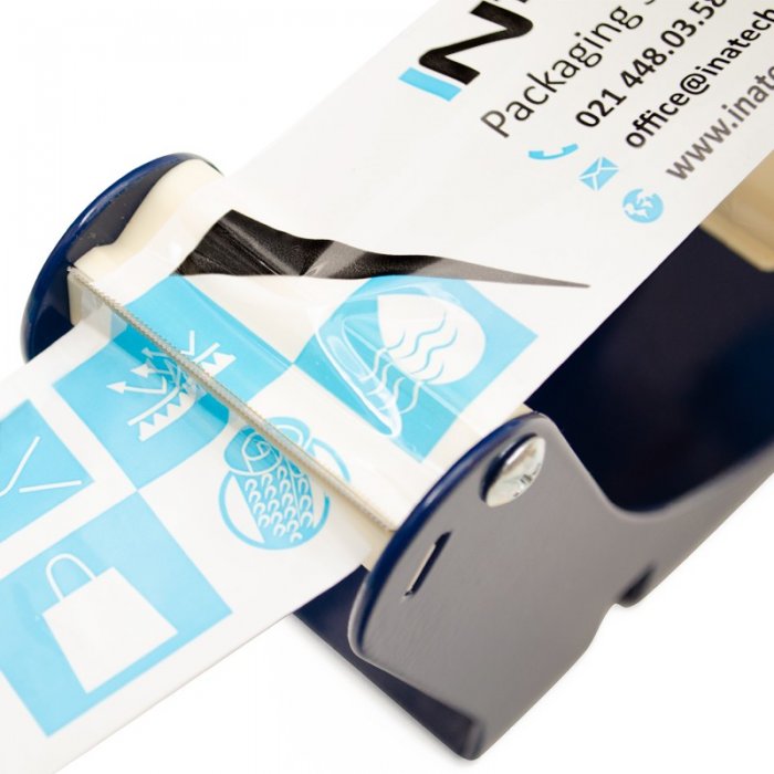 Distribuitorul de banda adeziva poate fi utilizat cu o banda cu latime 50 mm sau doua benzi cu latimea de 25 mm, oferind flexibilitate in functie de nevoile de ambalare.