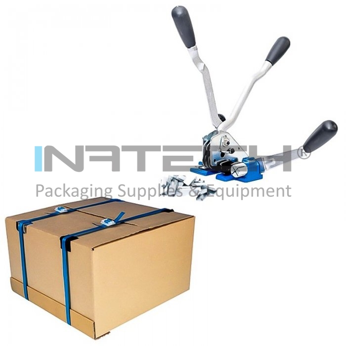 Aparat Legat Banda PP 12/16 mm, Manual ce permite legarea benzii de polipropilena cu ajutorul clemelor din metal si taierea benzii ramase in plus.