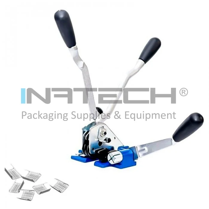 Capsele pentru legat banda PP se folosesc cu un cleste manual si eventual cu un carucior banda PP cu suport pentru banda si pentru capse.