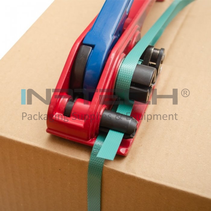 Acest dispozitiv de tensionare banda PP, PES este usor de manevrat si indispensabil in legarea marfurilor. Dupa ce banda PP sau din poliester este infasurata pe palet si fixata cu ajutorul buclelor sau a capselor, aparatul de tensionat banda face posibila cresterea fortei de strangere necesara ambalarii.