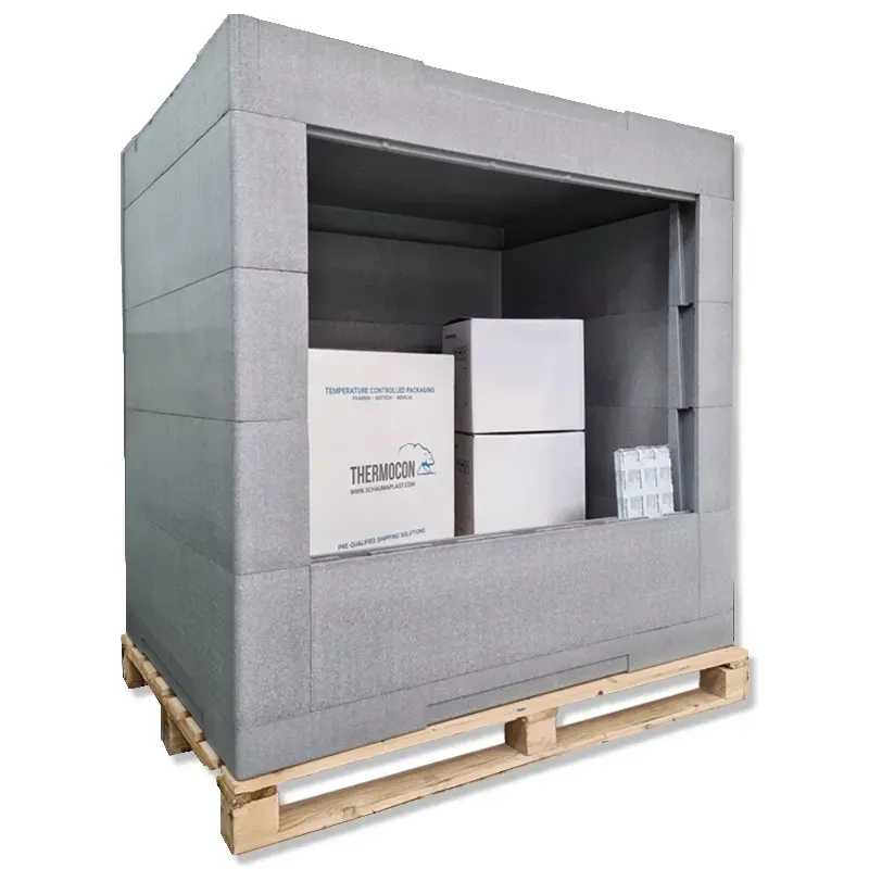 Thermocon Pallet Transporter 1210 L reprezintă un ambalaj termo precalificat destinat încărcării directe a europaletelor, fiind ideal pentru transportul bunurilor în regim controlat de temperatură. Cu dimensiuni exterioare de 1450 x 1050 x 1573 mm și un volum de 1210 L, acest sistem modular permite ajustarea înălțimii și capacității cutiei cu ajutorul ramelor laterale, oferindu-vă flexibilitate și un cost redus de depozitare.