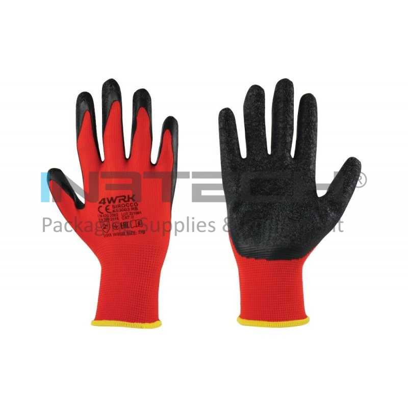 Manusi de lucru SIROCCO Marime 10/XL, Material poliester-latex poros, Greutate 18GR/Manusa gr, Culoare tesatura tricotata rosie-acoperire neagra