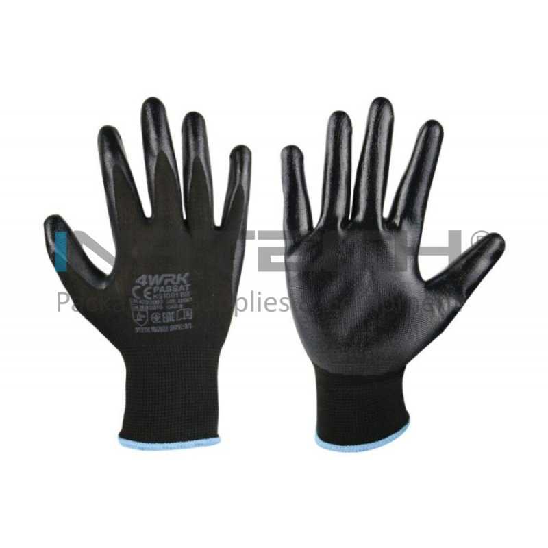 Manusi Lucru PASSAT Marime 10/XL, Material poliester-nitril, Greutate 21GR/Manusa gr, Culoare tesatura tricotata neagra-acoperire neagra