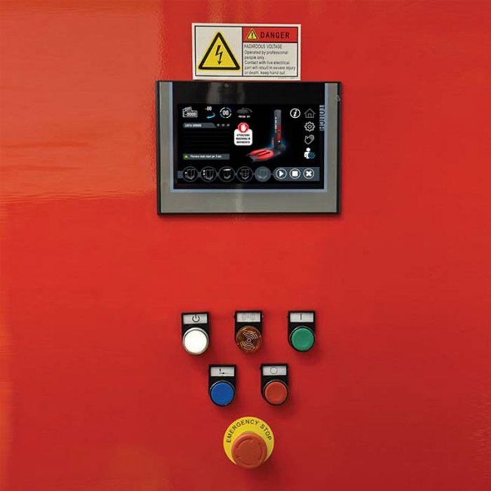 Cu ajutorul sistemului PLC si a ecranului tactil color de 7,2", se pot regla cu usurinta parametrii precum: viteza de urcare si coborare a transportorului, intarzierea citirii fotocelulei, contorul de cicluri etc.