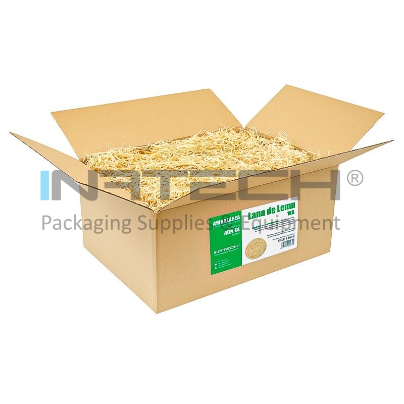 Lana Din Lemn este un ambalaj ecologic, prietenos cu mediul, care are numeroase intrebuintari. Fie ca vorbim despre ambalarea fructelor, ceramicii, vinurilor, branzeturilor, ciocolatei sau a altor produse naturale, lana de lemn este un ambalaj ideal ce ofera un aspect rustic si protejeaza eficient produsele. Mai mult, poate fi folosita si ca asternut pentru animale sau in domeniul constructiilor ca material izolant pentru perete si acoperis. De asemenea, materialul actioneaza impotriva socurilor pe durata transportului si a manipularii. Produsul se vinde la cutii de 1 kg.