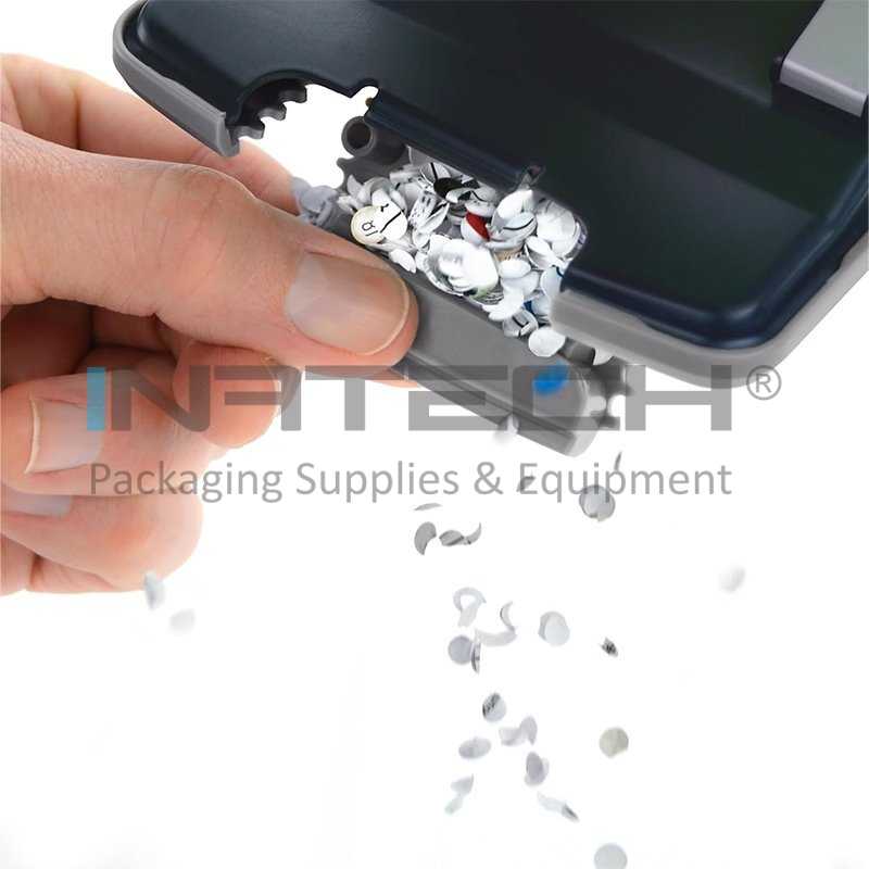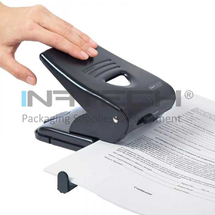 ● Capacitate de perforare: pana la 40 de coli (80 gsm) ● Sistem de perforare cu 2 gauri ● Constructie din metal rezistent cu ghilotine intarite ● Rigla de ghidaj ajustabila pentru aliniere precisa ● Tavita pentru confetti integrata, usor de golit ● Sistem de blocare a manerului pentru depozitare compacta ● Fereastra de personalizare pentru identificare rapida ● Design ergonomic, confortabil la utilizare ● Culoare: negru ● Garantie extinsa: 15 aniAvantaje Perforator metalic Rapesco, 40 coli, negru