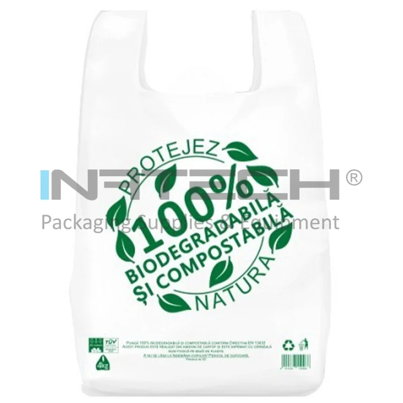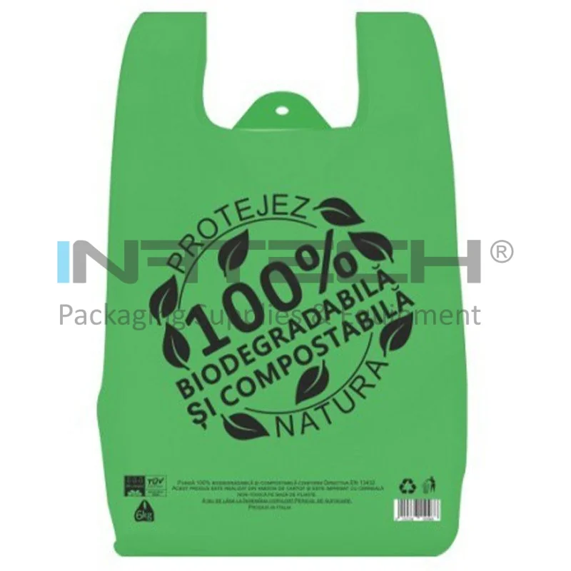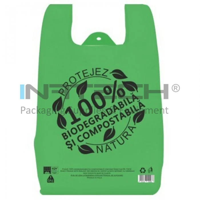 Sacose Biodegradabile compostabile, pungi in conformitate cu Directiva EN 13432. Punga biodegradabila expira doar in momentul cand aceasta intra in contact cu un mediu organic. Pungile biodegradabile compostabile sunt fertilizante pentru sol, deoarece sunt produse din amidon din cartofi si folosesc tehnologia BIOCARTENE si certificate in Bruxelles cu OK COMPOST si VINCOTTE conform Directivei EU 13432.