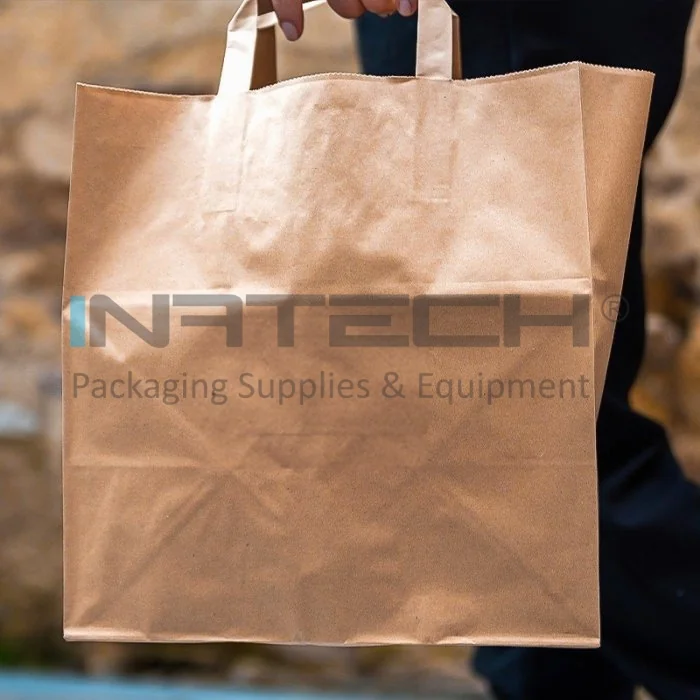 Pungi Hartie Cu Maner Plat, Hartie Kraft Natur 70g/mp