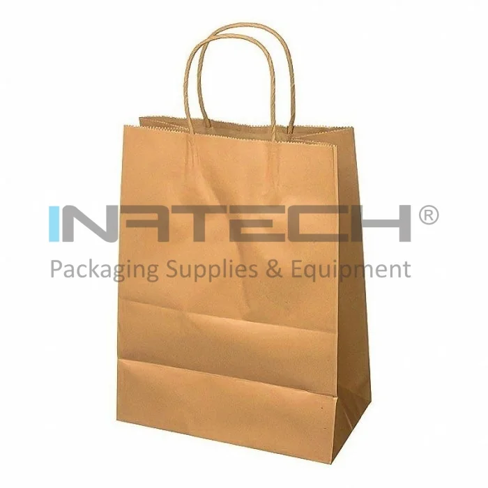 Pungi Hartie Cu Maner Rasucit, Alb/Natur