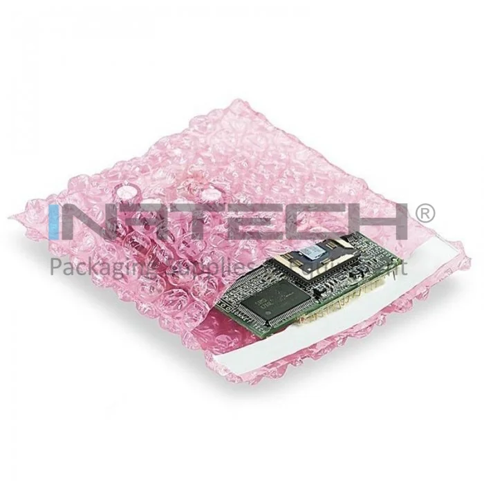 Pungi Cu Bule In Doua Straturi, Roz, 60 my pentru protectia produselor fragile. Folia cu bule de aer este un material de ambalare usor si flexibil, produs din folie de polietilena de joasa densitate, ideala pentru protejarea produselor fragile si cu forme neregulate. Acest tip de ambalaje protejeaza foarte bine suprafata produsului si ofera o protectie antisoc si antivibratii.
