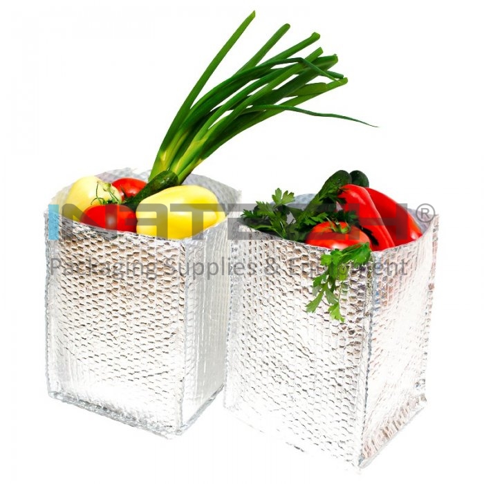 Ambalajul termoizolant pentru cutii, este destinat capitonarii termice a cutiilor din carton. Husa termoizolanta este produsa din folie cu bule de aer laminata cu aluminium pur pe partea exterioara. Pe langa protectia termica acest ambalaj ofera si protectie pentru produsele ambalate, fiind produs din folie cu bule de aer. La cerere se pot produce si alte dimensiuni.