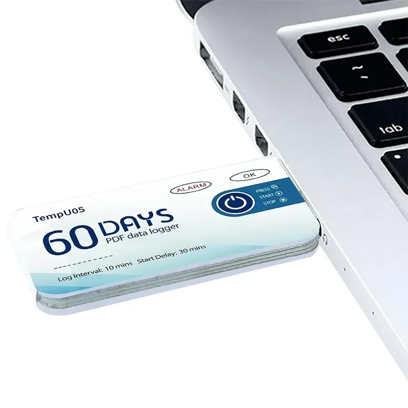 TempU05 este un logger de date USB de unica folosinta, utilizat pentru monitorizarea temperaturii in aplicatii precum transportul, depozitarea si retailul. Cu dimensiuni compacte de 67 x 28 x 5.5 mm si o greutate de doar 12g, acest dispozitiv ofera o gama larga de optiuni pentru utilizatorii care au nevoie de un monitorizat de temperatura precis si usor de utilizat.